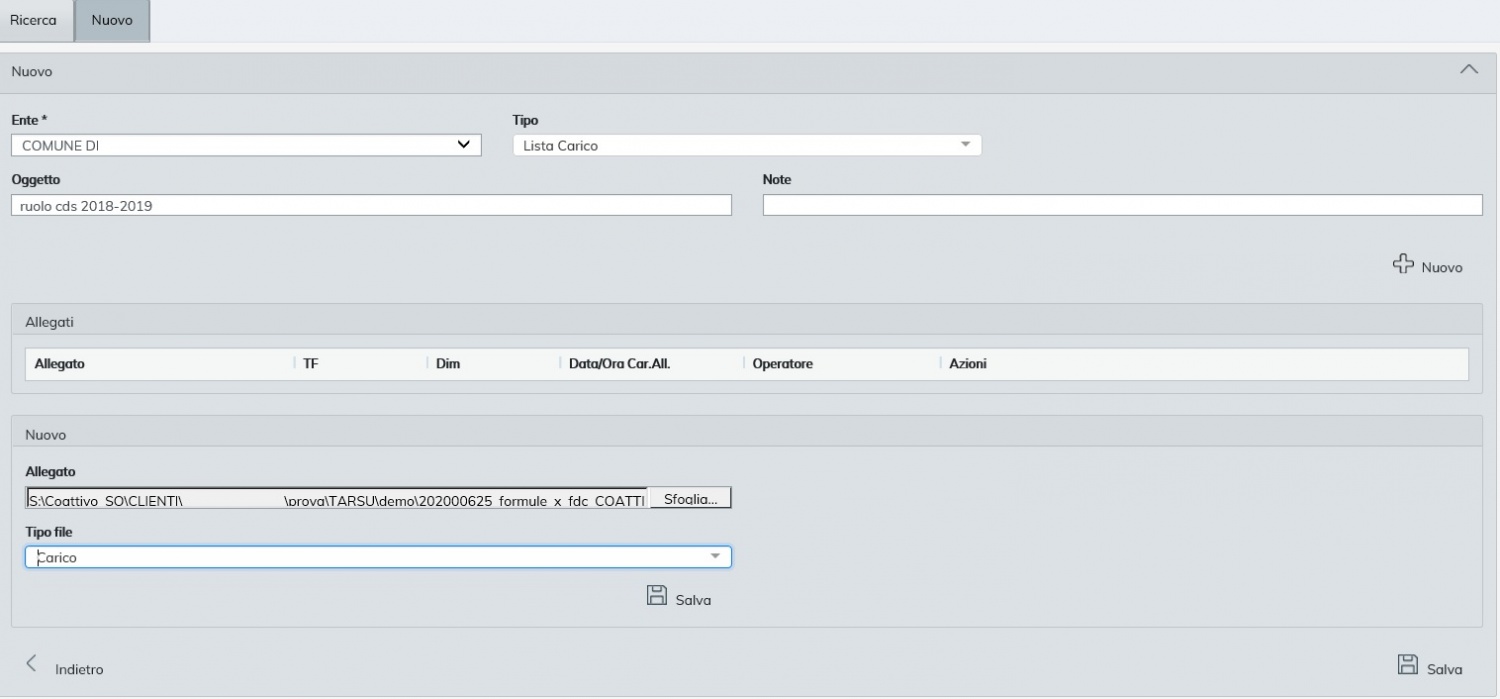 Importazione da archivio locale
