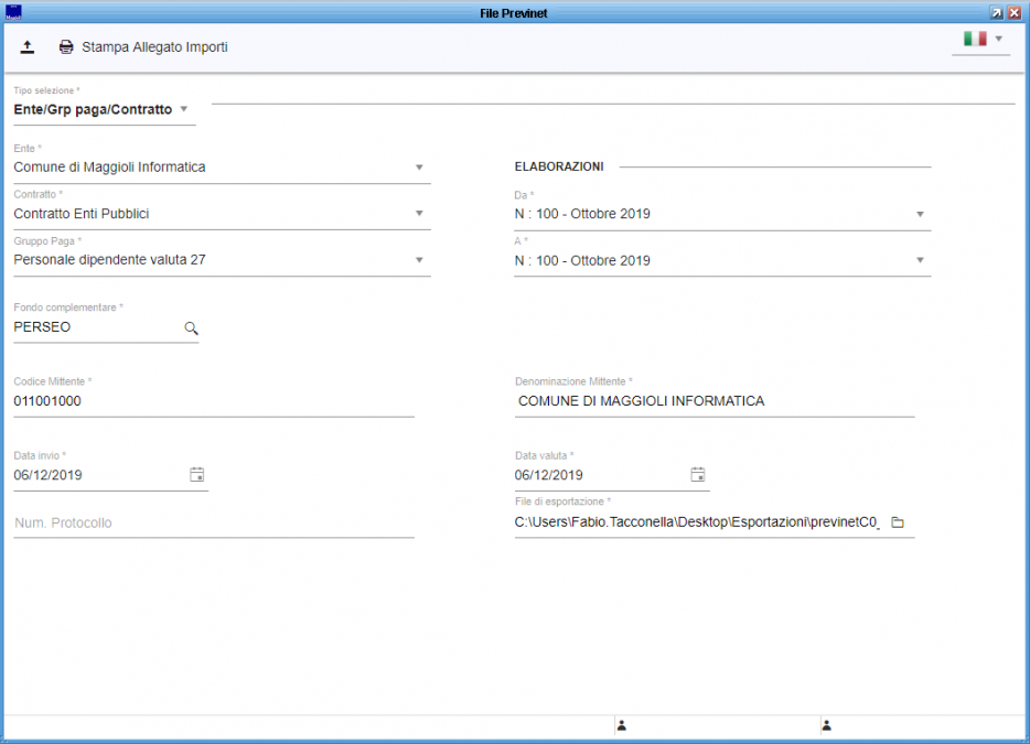 Importazione da archivio locale