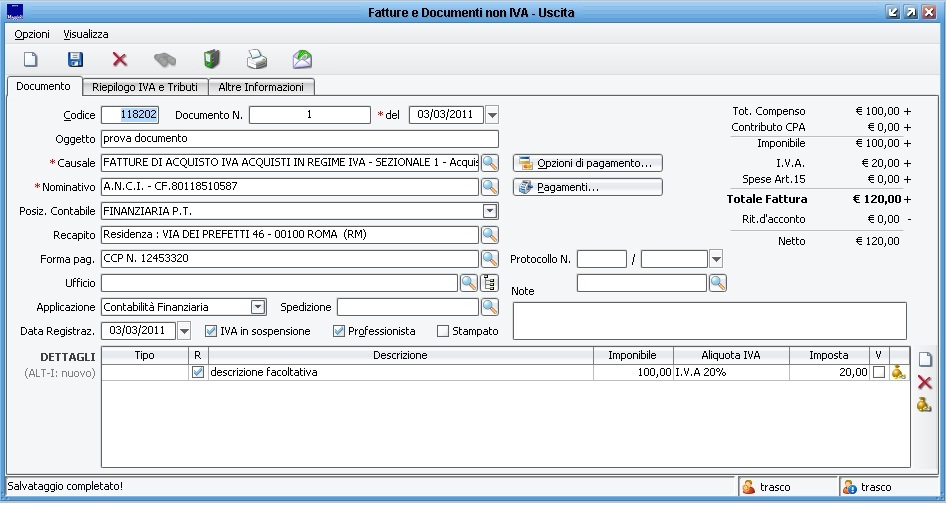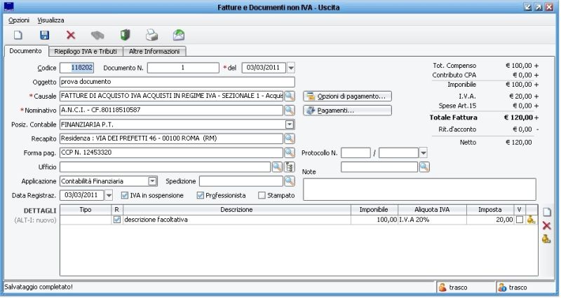 Utilizzo del file